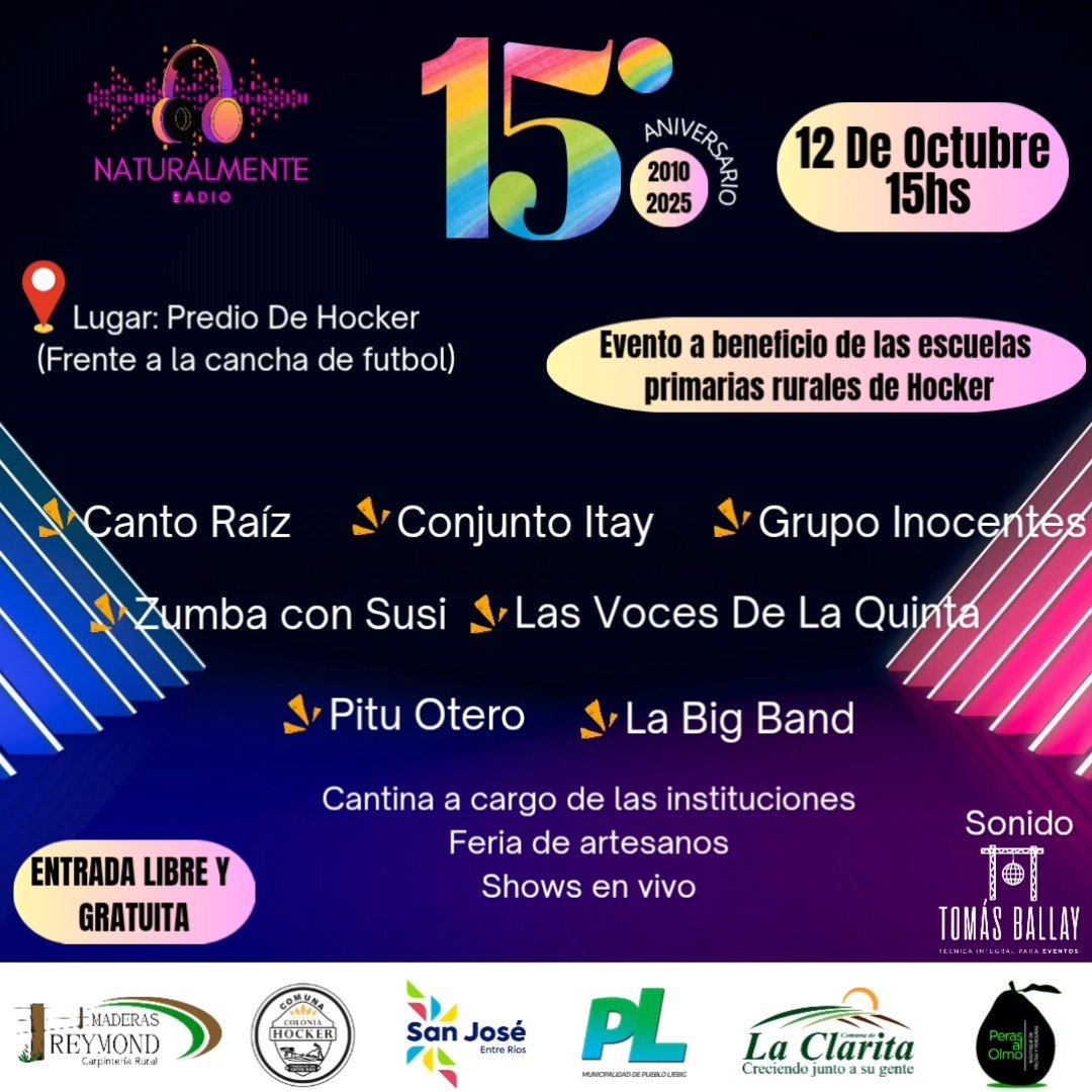 12oct3:00 pm11:00 pm15 AÑOS DE "NATURALMENTE RADIO"Feria de artesanos - show en vivo