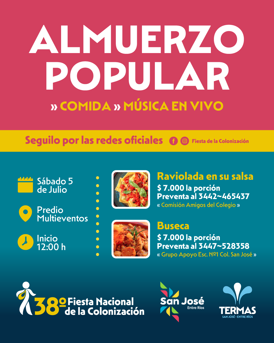 05jul12:00 amALMUERZO POPULARAlmuerzo, venta de porciones y música en vivo