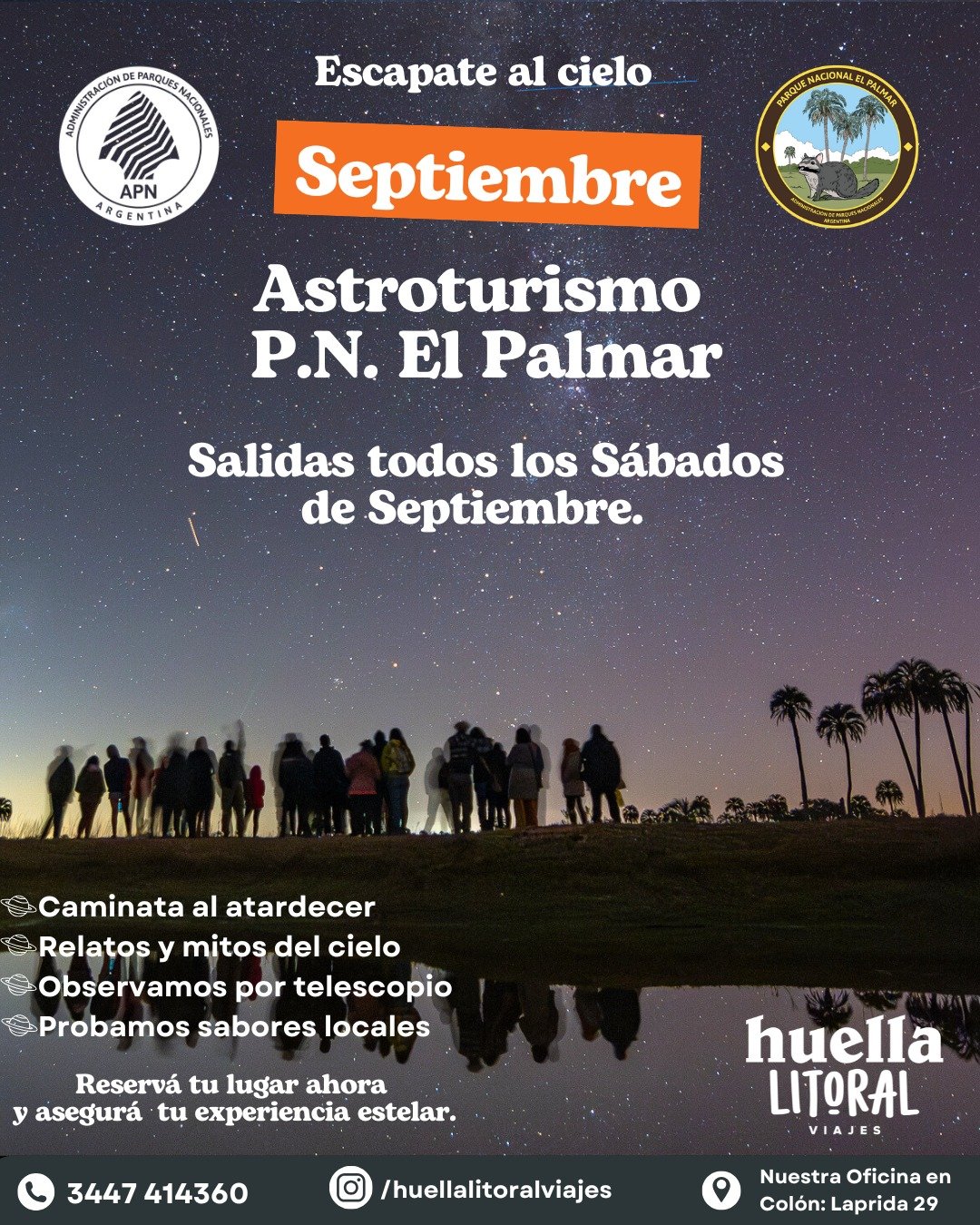 27sep6:00 pm9:00 pmASTROTURISMO EN PARQUE NACIONAL EL PALMARHuella Litoral - Colón