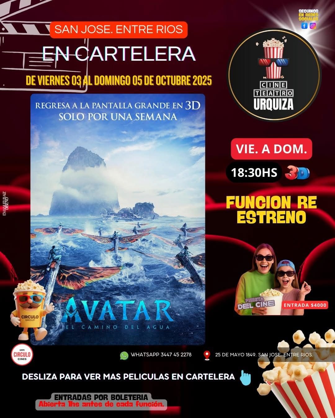 05oct6:30 pm8:00 pmAVATAR, EL CAMINO DEL AGUACine Urquiza