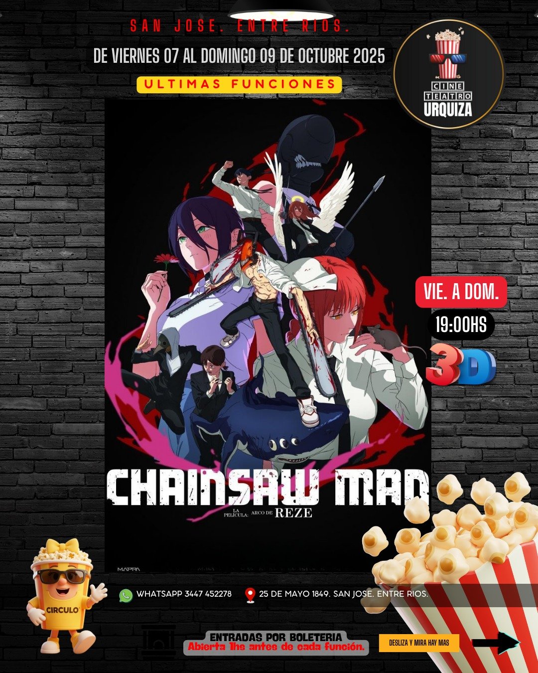 09nov7:00 pm8:15 pmChainsaw Man, La Película: Arco de RezeCine Urquiza