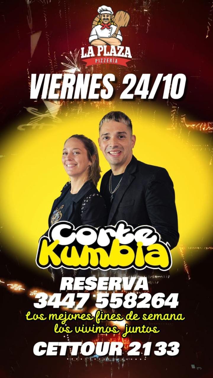 24oct10:00 pm12:00 amCORTE KUMBIAShow en vivo - La Plaza Pizzeria