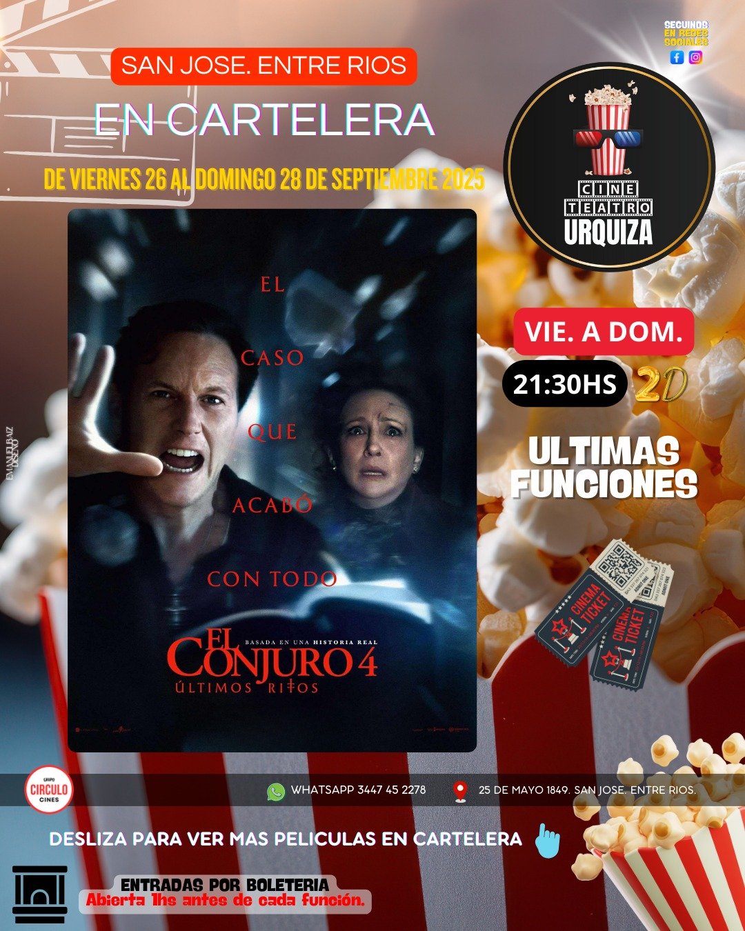 27sep9:30 pm11:00 pmEL CONJURO 4, ÚLTIMOS RITOSCine Urquiza