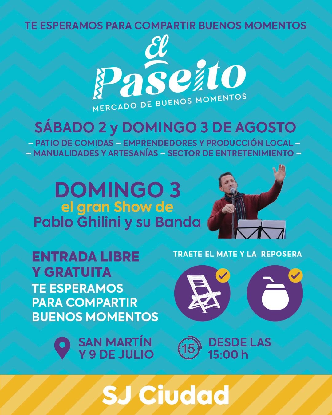 03aug3:00 pmShow en vivo de Pablo Ghilini y su banda en el paseítoEmprendedores, manualistas, food truck y mas..