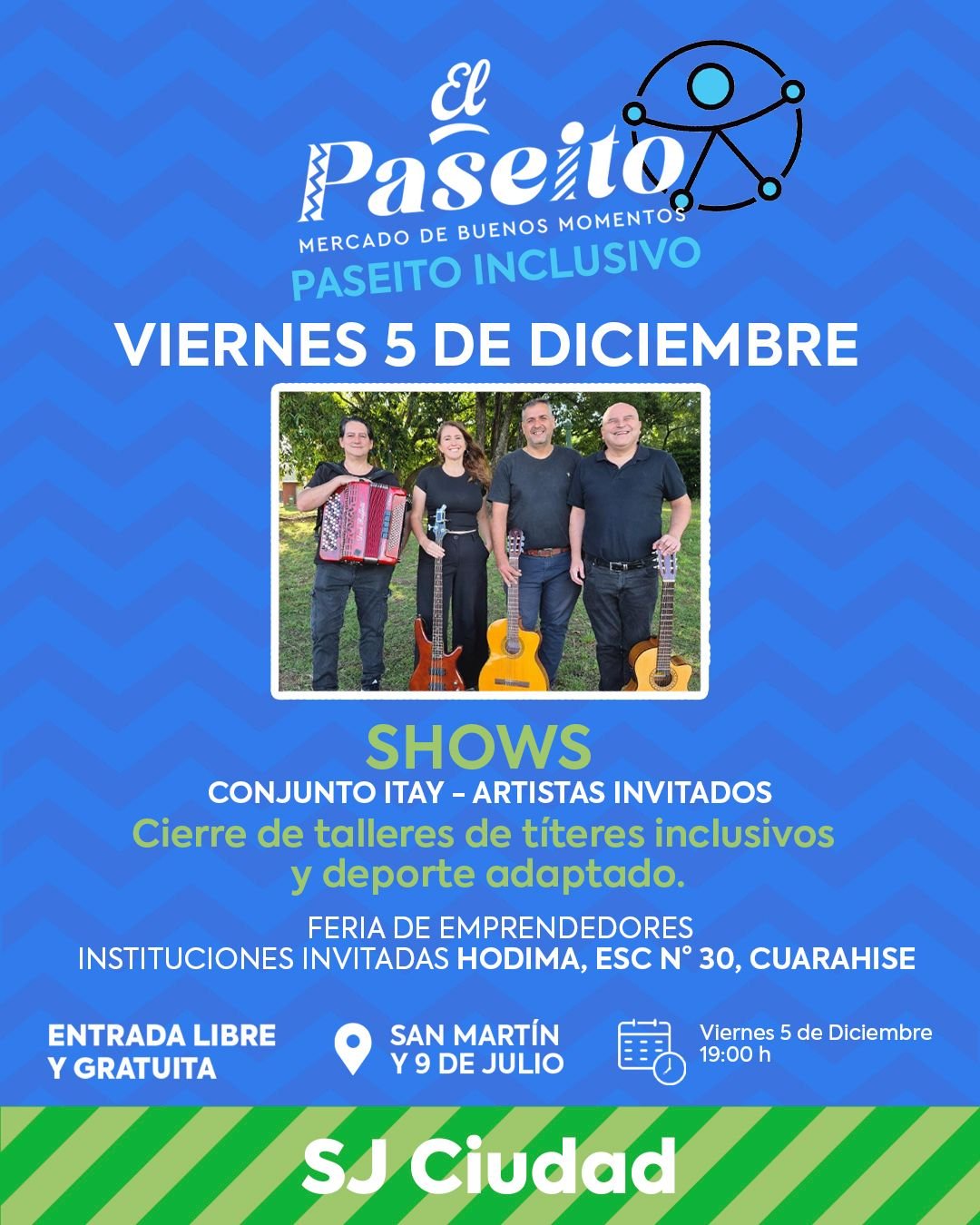 05dec7:00 pm10:00 pmEL PASEÍTO INCLUSIVO + CIERRE DE TALLERES + SHOWS EN VIVOEmprendedores, manualistas, food truck y mas..