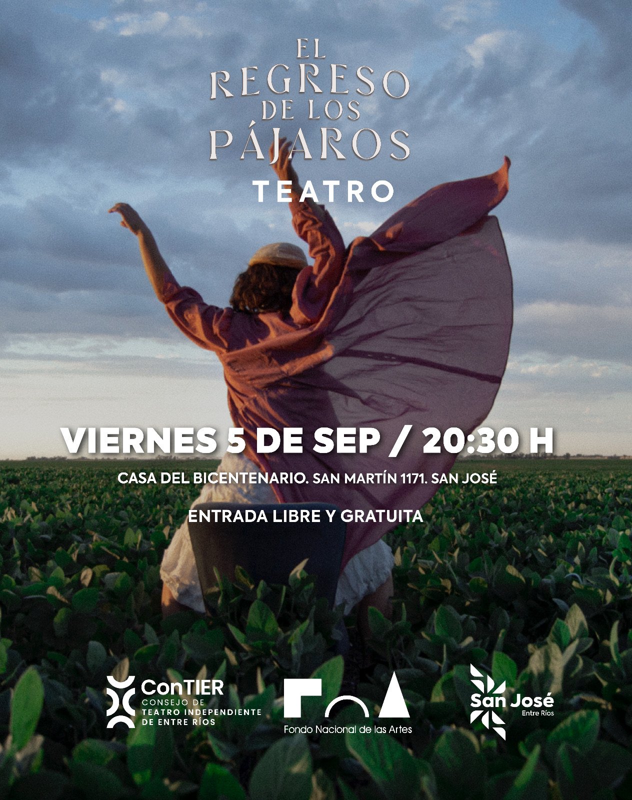 05sep8:30 pm10:30 pmEL REGRESO DE LOS PÁJAROSTeatro en Casa del Bicentenario - San José