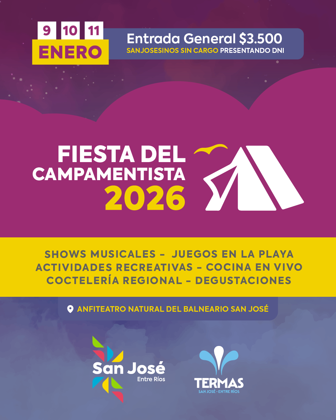 11jan5:00 pm12:00 pmFIESTA PROVINCIAL DEL CAMPAMENTISTABalneario Camping San José