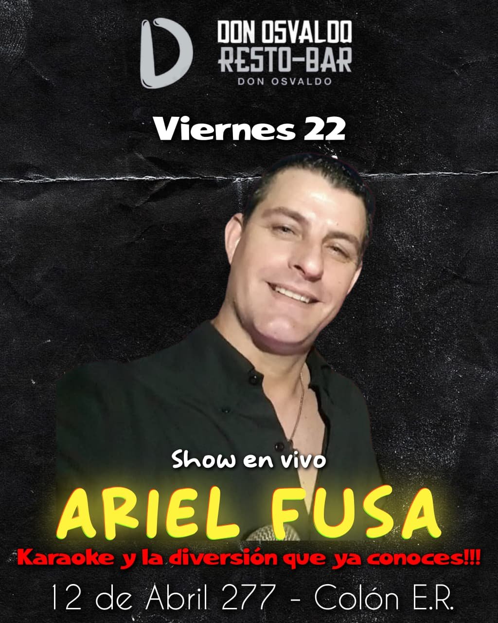 22aug8:00 pm12:00 pmKARAOKE Y SHOW EN VIVO DE ARIEL FUSADon Osvaldo - Colón