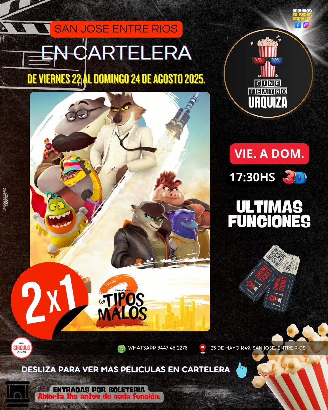24aug5:30 pm6:30 pmLOS TIPOS MALOS 2Cine Urquiza