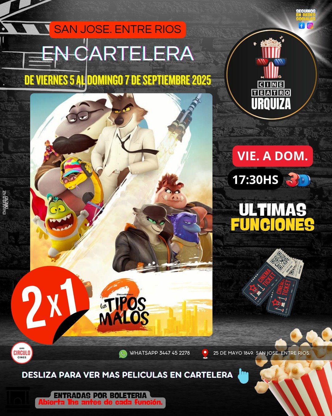 07sep5:30 pm6:30 pmLOS TIPOS MALOS 2Cine Urquiza
