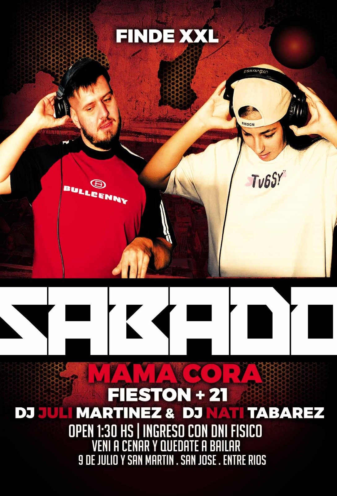 22nov12:00 pm5:00 amMAMÁ CORA +21Dj Juli Martinez y Nati Tabarez