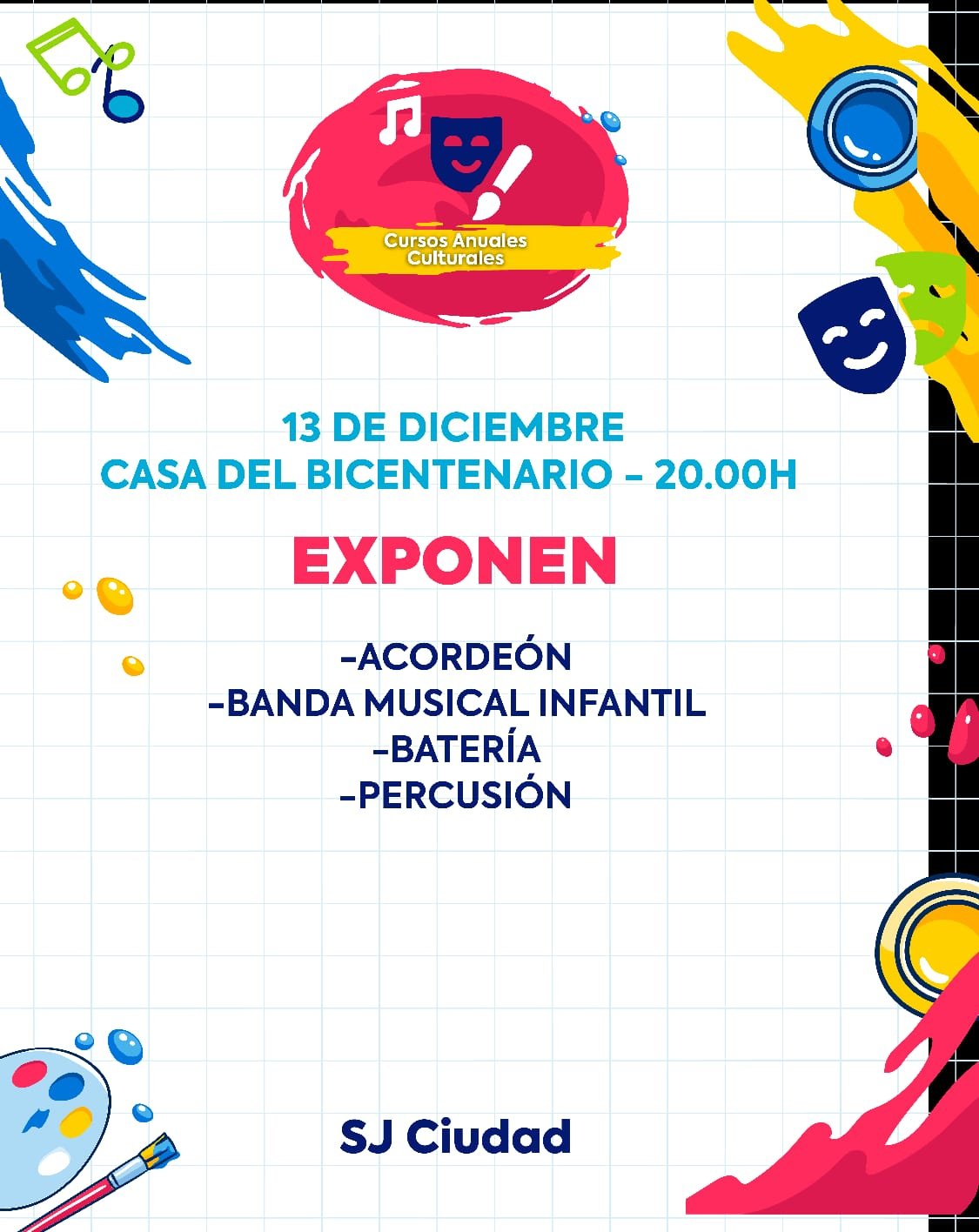 13dec8:00 pm10:00 pmMUESTRA ANUAL DE TALLERES CULTURALESCasa del Bicentenario San José