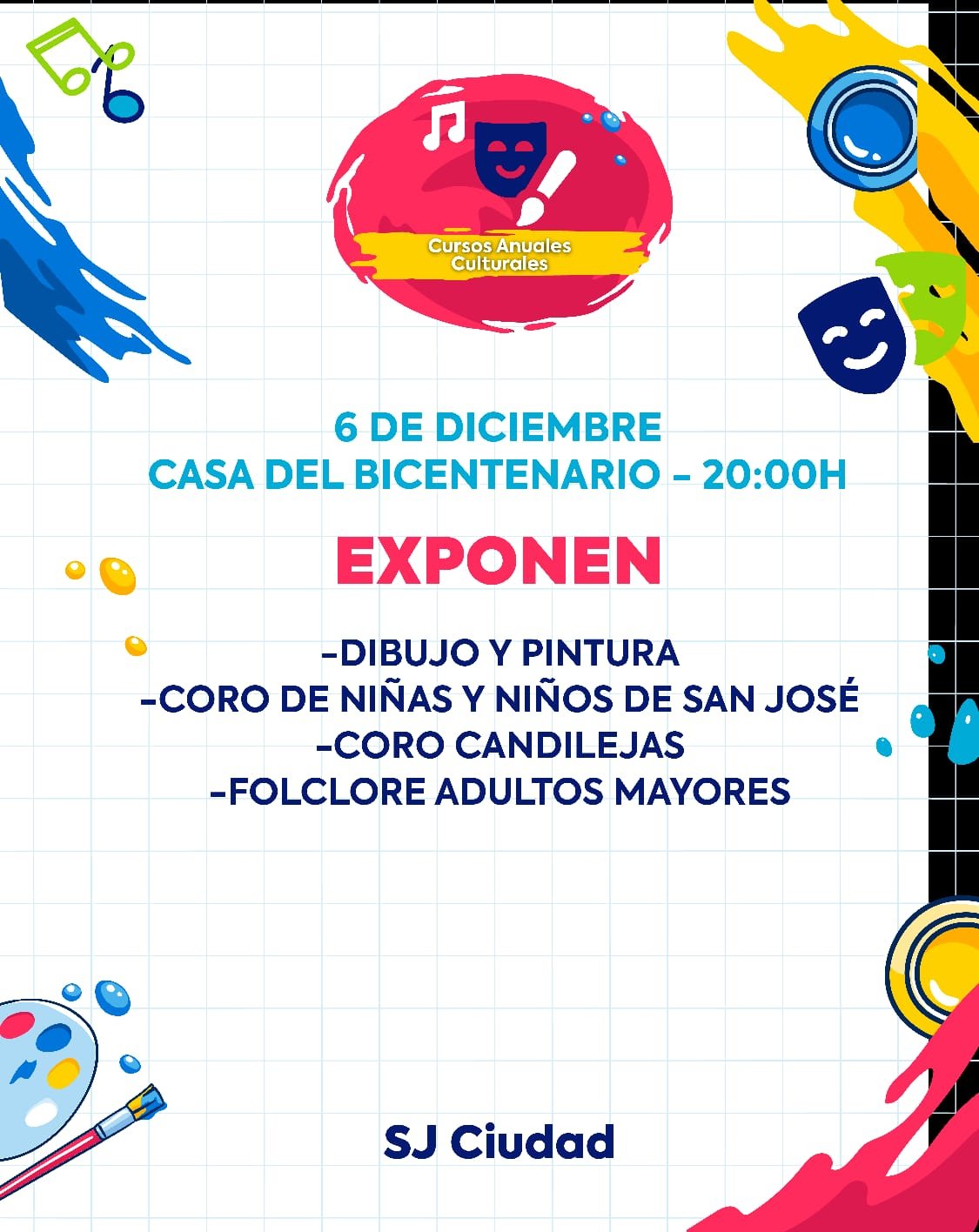 06dec8:00 pm10:00 pmMuestra anual de talleres culturalesCasa del Bicentenario San José