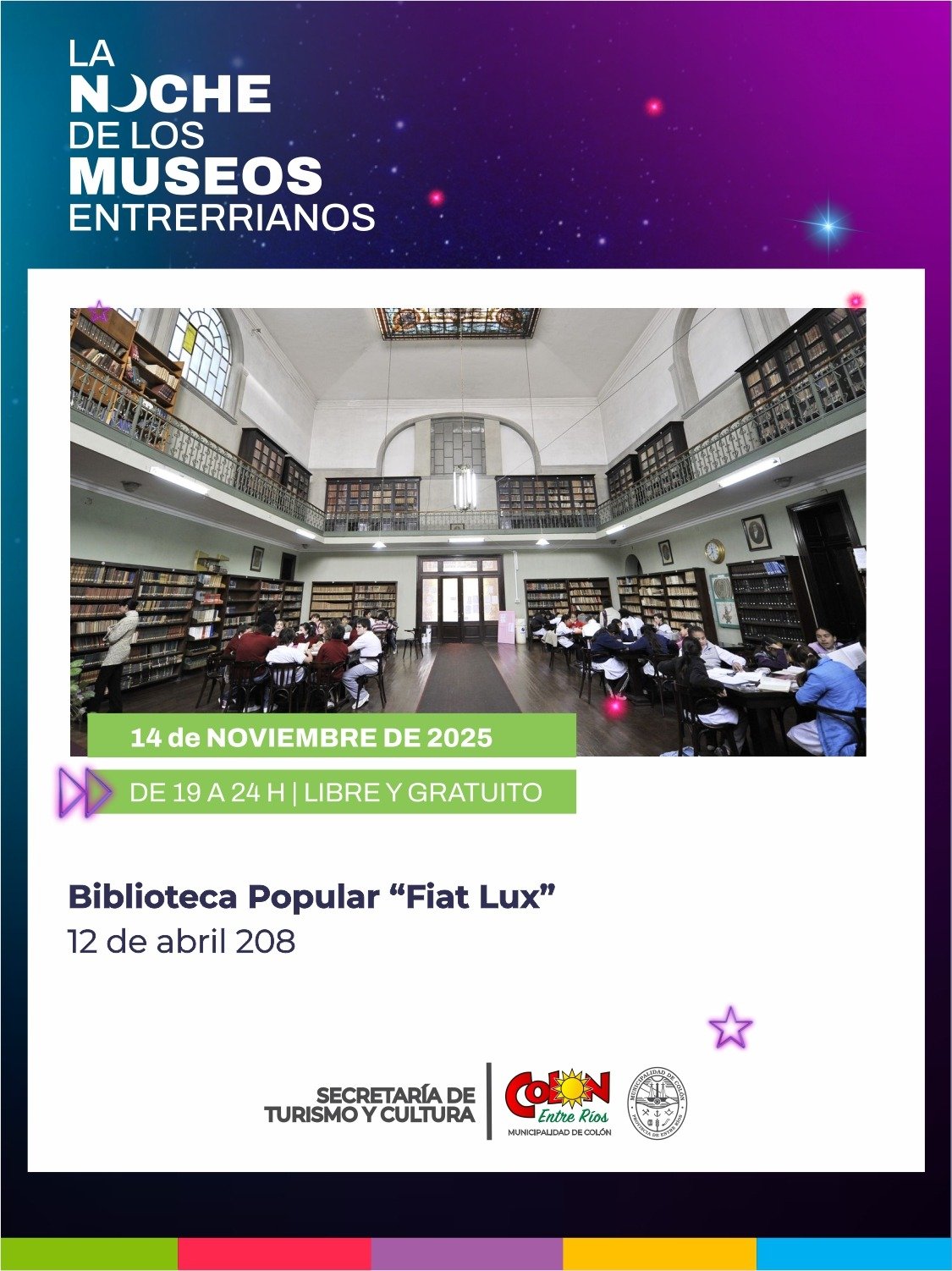 14nov7:00 pm12:00 pmNoche de los museos entrerrianosBiblioteca Fiat Lux - Colón