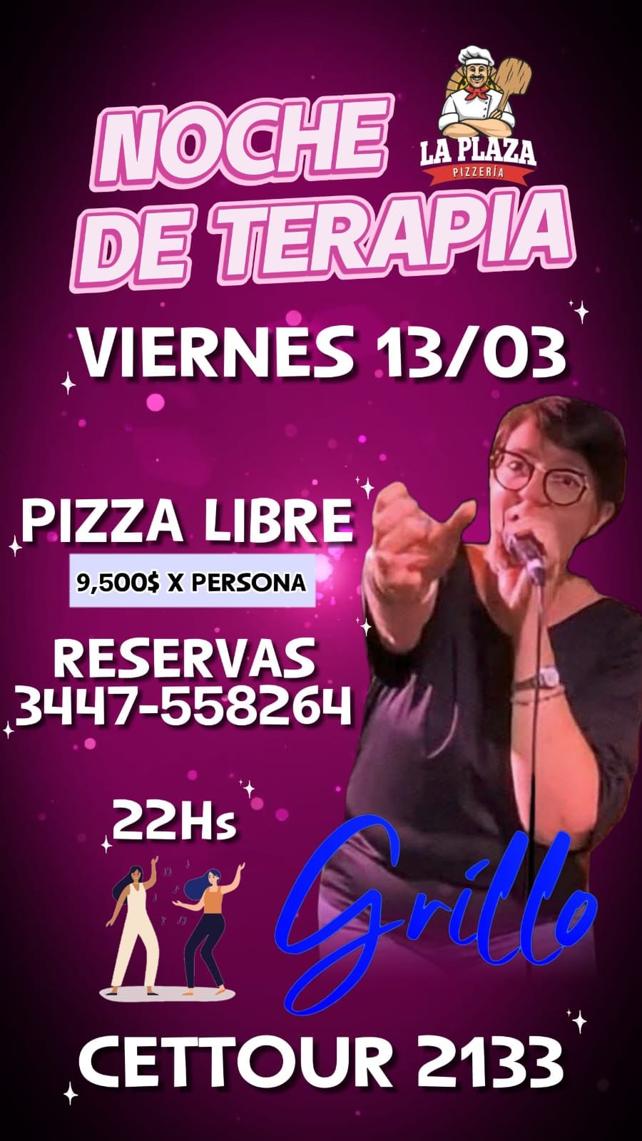 13mar10:00 pm1:00 amNOCHE DE TERAPIA - ESPECIAL 8MPizza libre