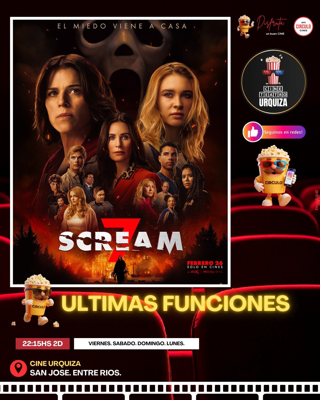 08mar10:15 pm11:30 pmSCREAM 7Cine Urquiza