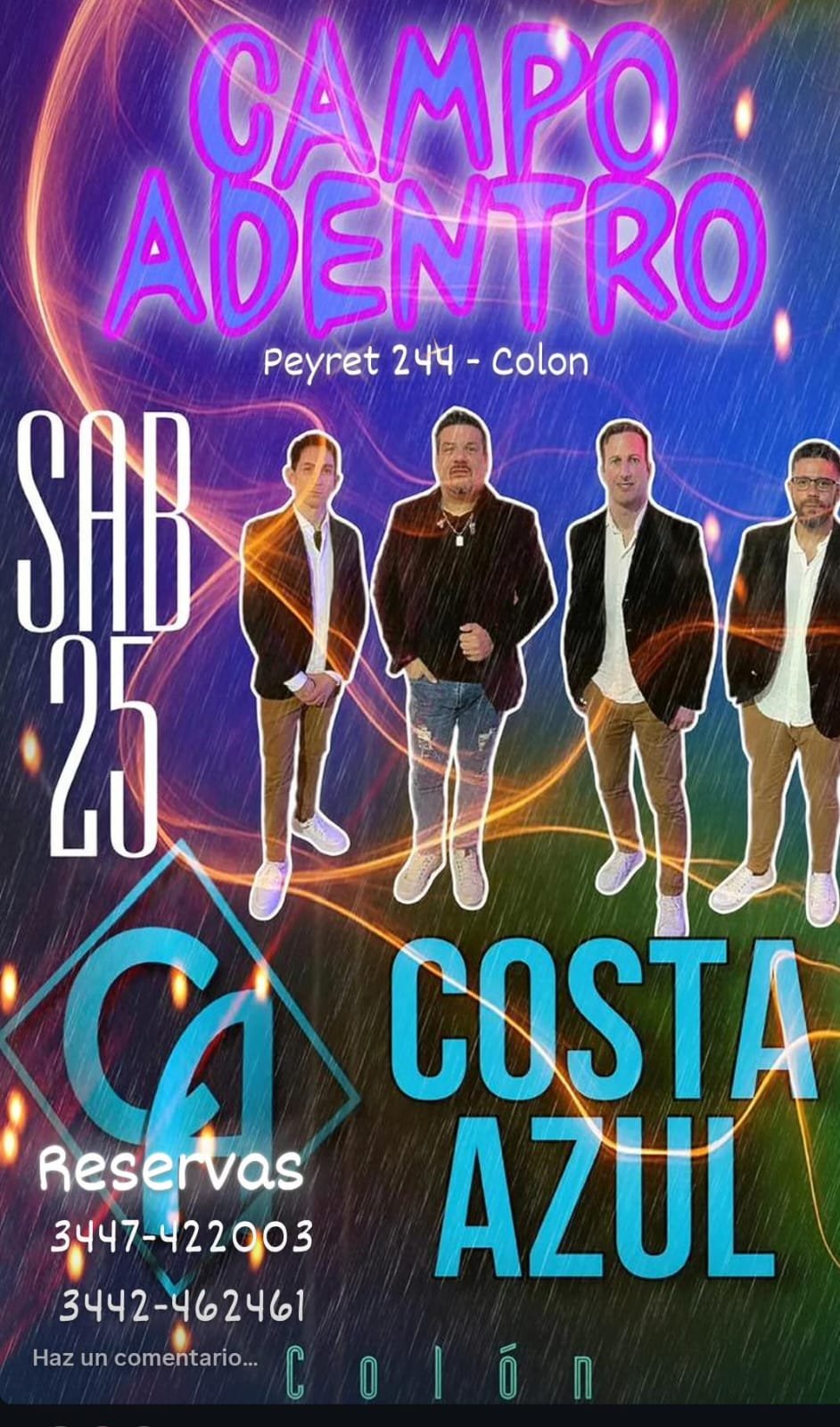 25oct8:00 pm9:00 pmSHOW EN VIVO DE COSTA AZULCampo Adentro - Colón