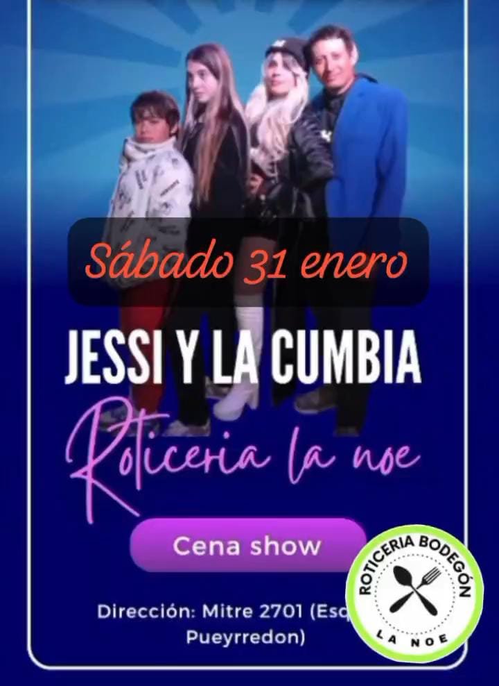 31jan8:00 pm11:00 pmSHOW EN VIVO DE JESSI Y LA CUMBIACena Show - Bodegón La Noe