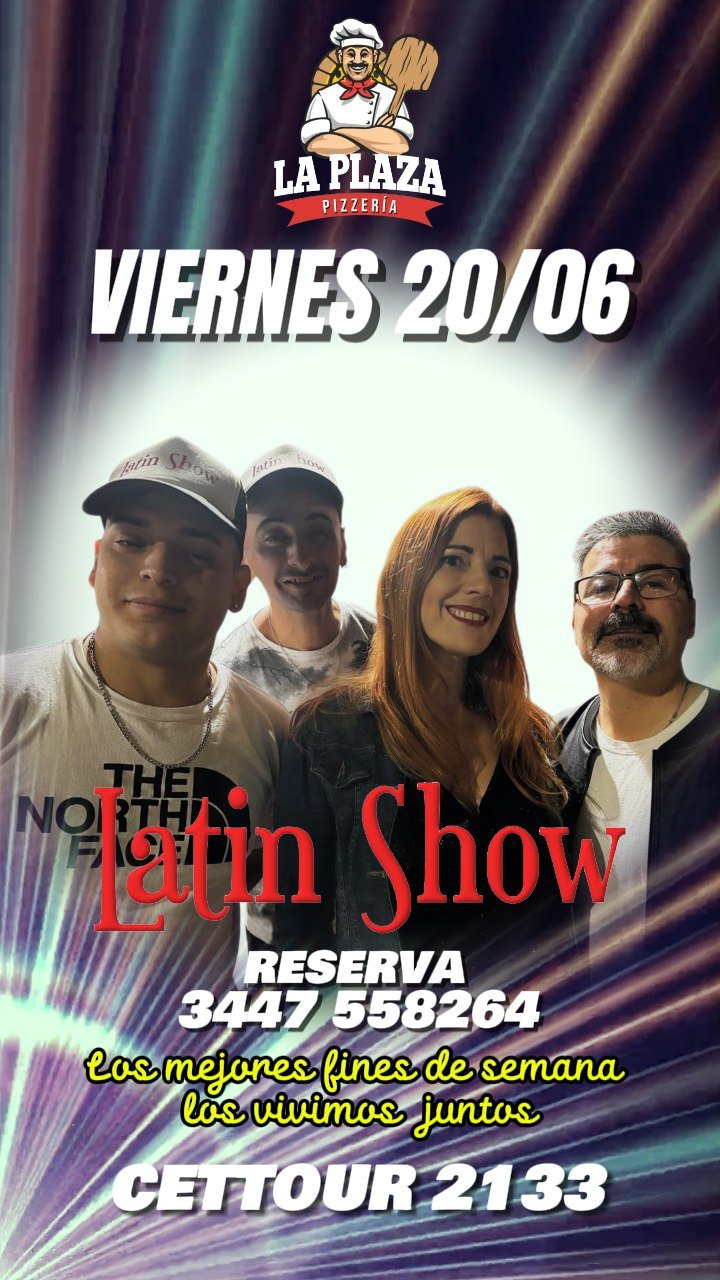 20jun8:00 pmSHOW EN VIVO DE LATIN SHOWCena show - Pizzería La Plaza