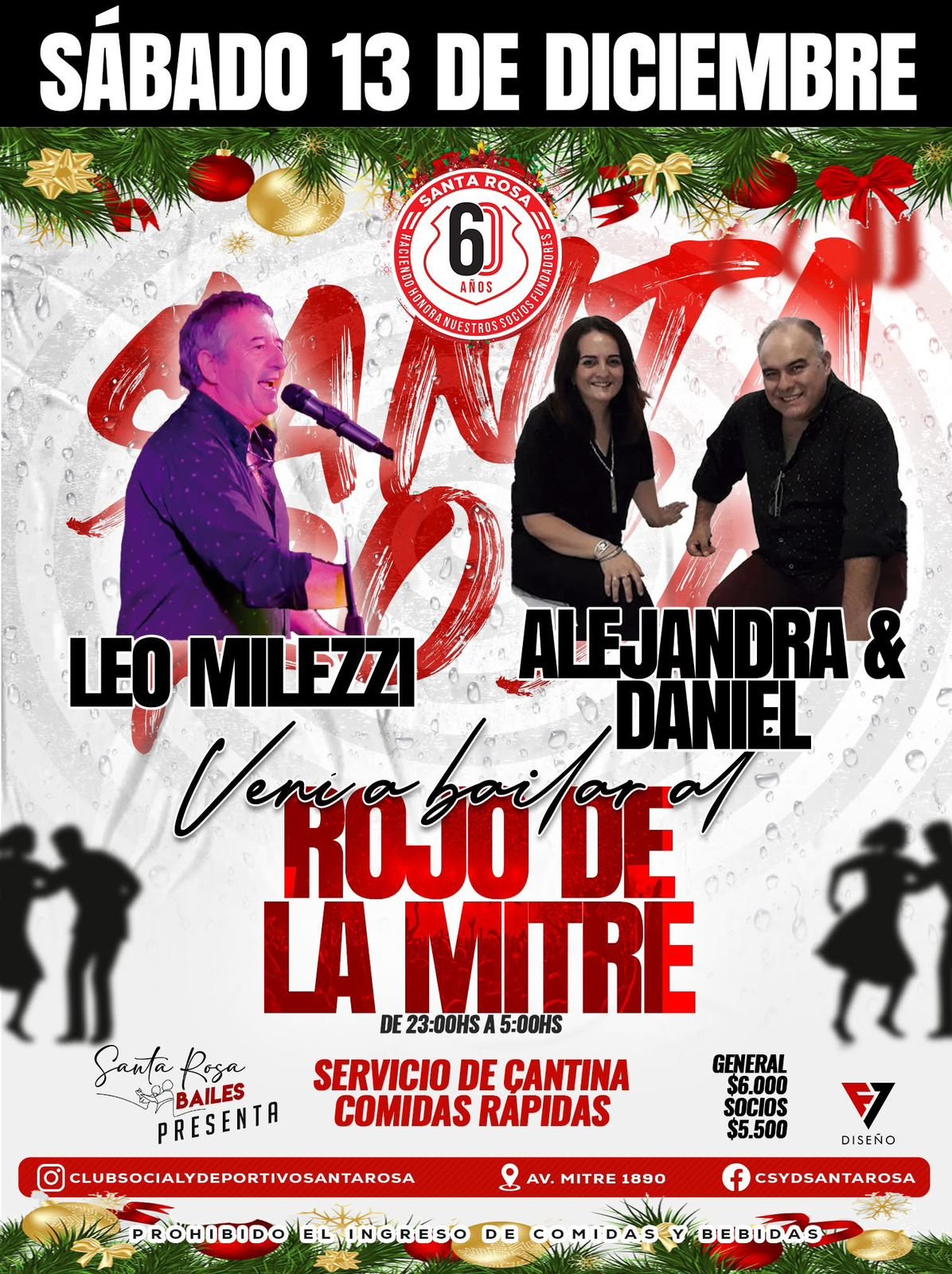 13dec(dec 13)11:00 pm14(dec 14)5:00 amSHOW EN VIVO DE LEO MILEZZI + ALEJANDRA Y DANIELBaile en Club Santa Rosa