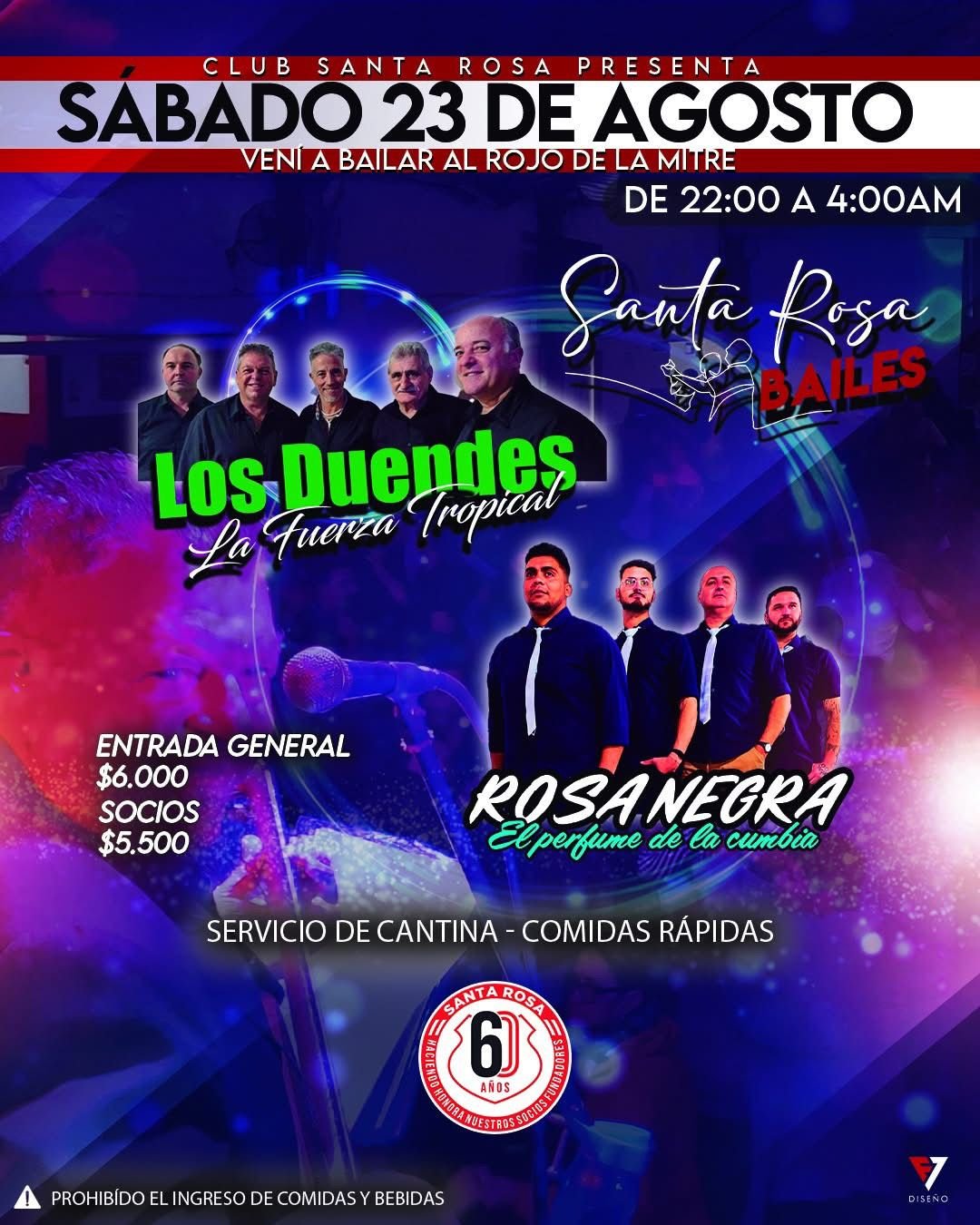 23aug(aug 23)10:00 pm24(aug 24)4:00 amSHOW EN VIVO DE LOS DUENDES Y ROSA NEGRABaile en Club Santa Rosa
