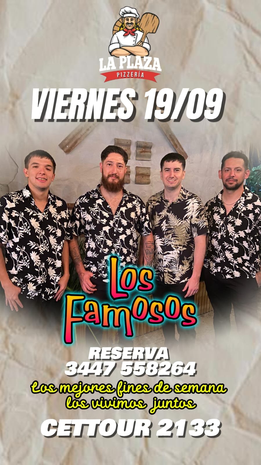 19sep8:00 pm9:30 pmSHOW EN VIVO DE LOS FAMOSOSCena show - Pizzería La Plaza