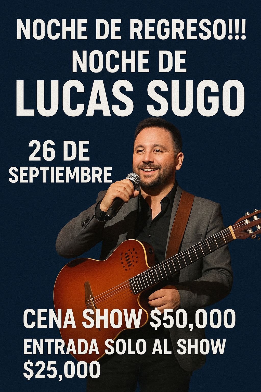 26sep(sep 26)9:00 pm27(sep 27)3:00 amSHOW EN VIVO DE LUCAS SUGOPuerto de Palos - Colón