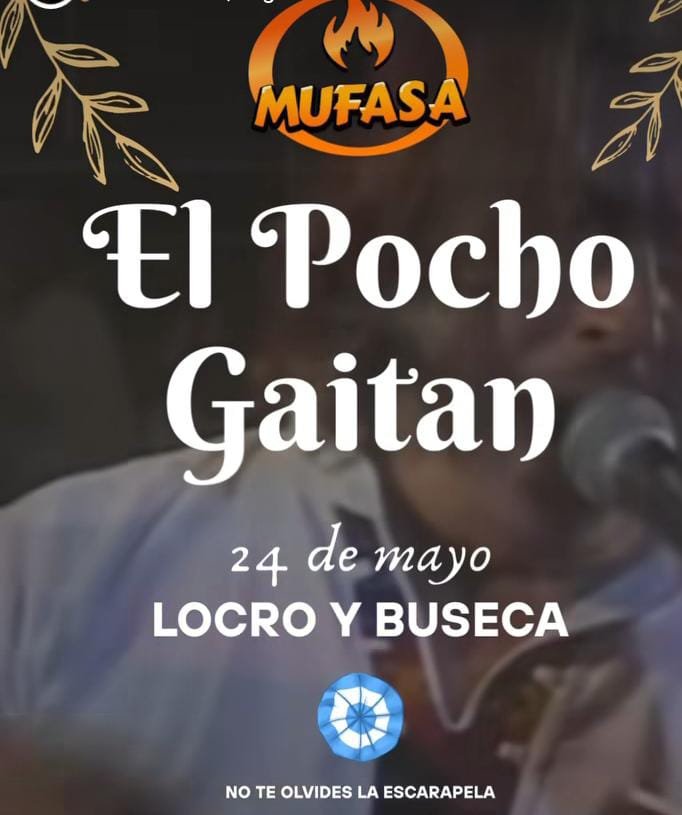 24may8:00 pmPeña folklórica con show en vivo de Pocho GaitánPeña Mufasa