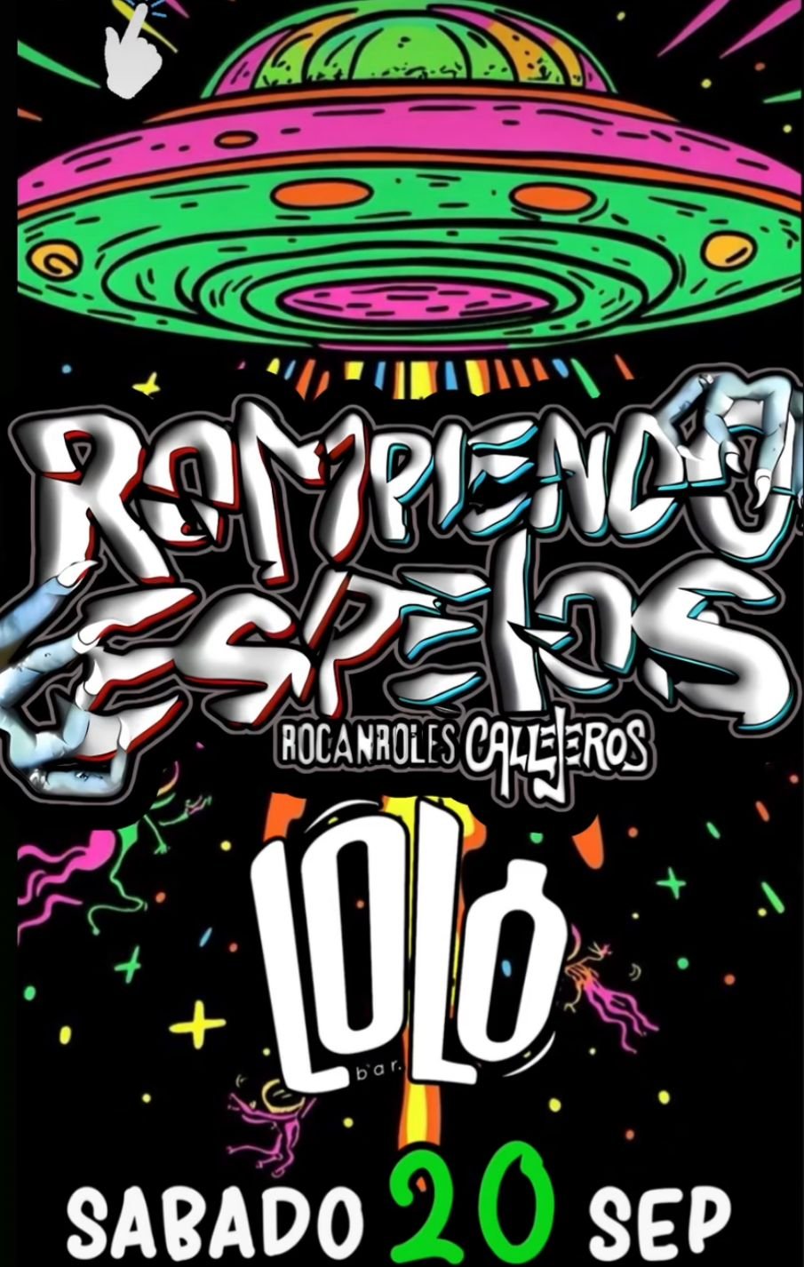 20sep(sep 20)11:00 pm21(sep 21)4:00 pmSHOW EN VIVO DE ROMPIENDO ESPEJOS, ROCANROLES CALLEJEROSLolo Bar
