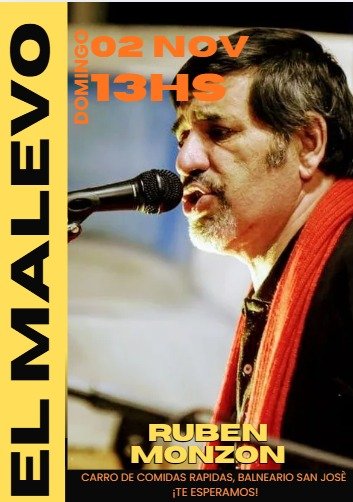 02nov1:00 pm2:00 pmSHOW EN VIVO DE RUBÉN MONZÓNEl Malevo - Balneario San José