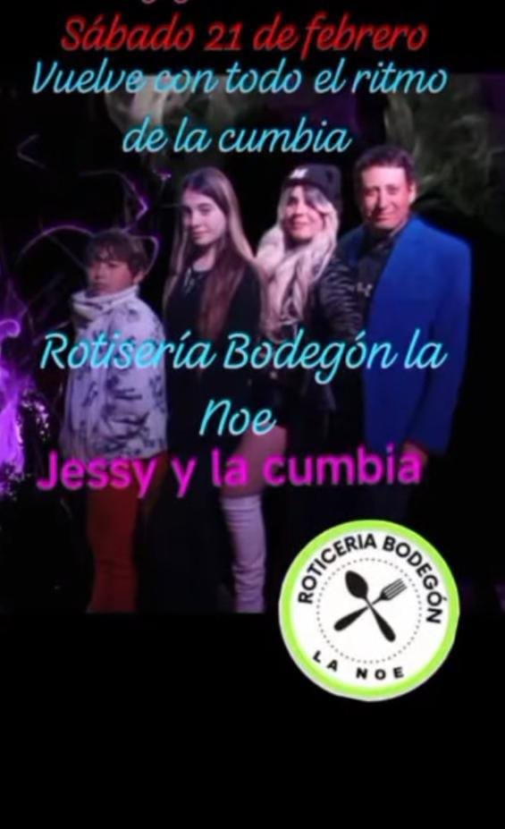 21feb8:00 pm10:00 amSHOW EN VIVO JESSY Y LA CUMBIABodegón y rotiseria La Noe