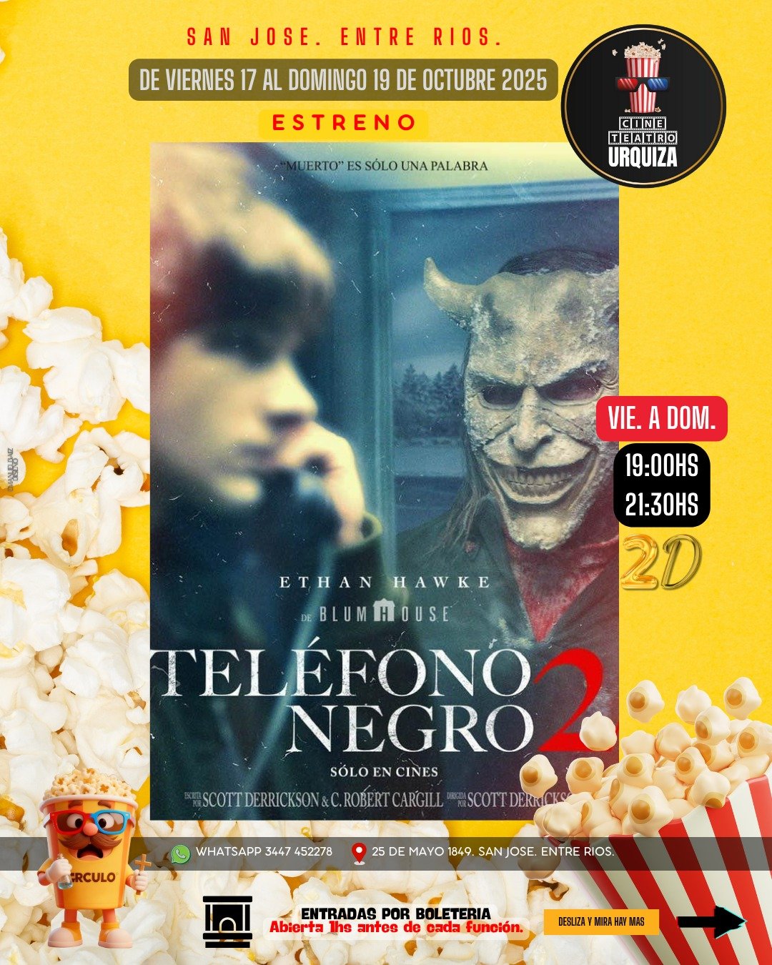 17oct7:00 pm8:30 pmTELÉFONO NEGRO 2Cine Urquiza