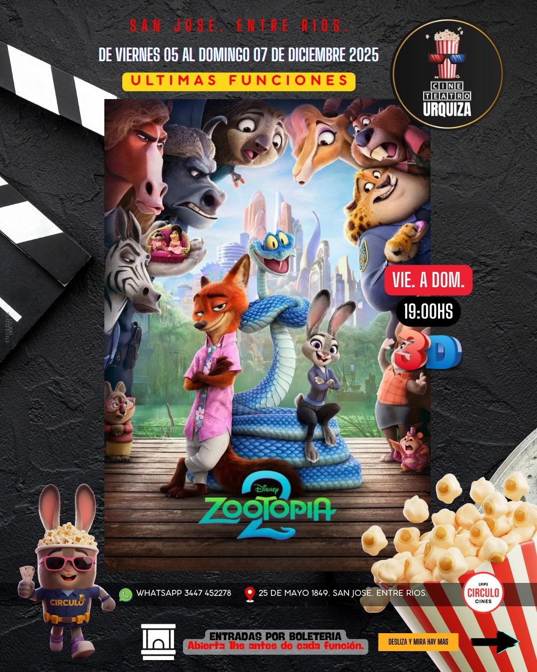 05dec7:00 pm8:30 pmZOOTOPÍA 2Cine Urquiza
